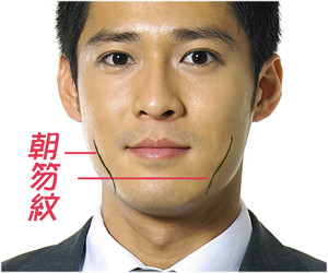 從酒窩附近向下延伸的朝(ㄓㄠ)笏(ㄏㄨˋ)紋!
