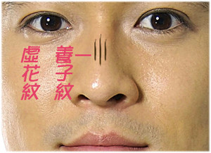 笑的時候鼻樑上出現皺紋,是養子紋。